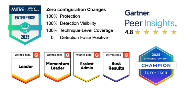 2025 MITRE ATT&CK實測評估報告,Cynet 是國際業界唯一於整體測試過程中以其預設配置未進行任何設定調整,即達成「攻擊防護力 (Protection)」、「偵測可視性 (Detection Visibility)」、「技術涵蓋率(Technique-Level Coverage)」三項指標100%滿評分之專業資安廠商,且獲得零誤判 (0 Detection False Positives) 領先群倫的實測結果。Cynet 於2025 MITRE ATT&CK實測過程完成14個攻擊步驟與90項攻擊子步驟、48項MITRE ATT&CK攻擊技術,全數成功偵測與阻擋,充分展現其優於同業之即時性與精準度。